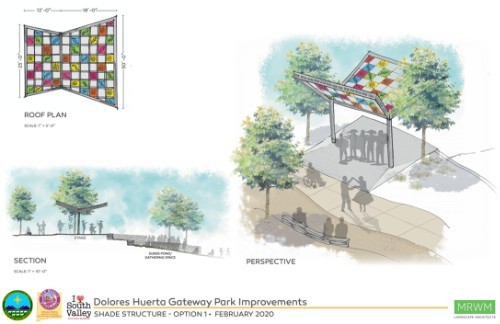 Dolores Huerta Gateway Park Design Improvements Concept. Courtesy/NMEDD