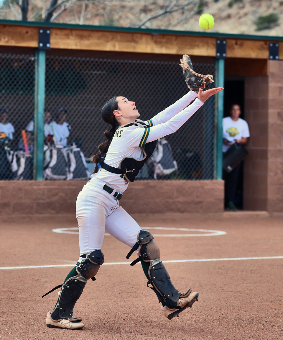 Topper Catcher Aaliyah Chavez makes the catch for the 1st out in the 4th inning. Photo by John McHale/ladailypost.com Read More