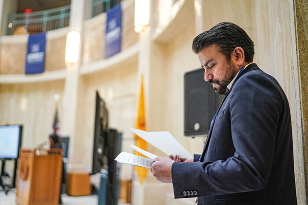 Jeff Lopez, director of the New Mexico Office of Broadband Access, reviews his notes in between presenters during Broadband Day at the state Capitol on Thursday, Feb. 12, 2026. Gabriela Campos/The New Mexican