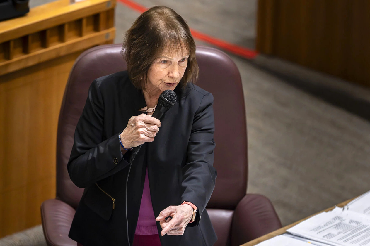 Senate President Pro Tem Mimi Stewart, D-Albuquerque, sponsor of the Clear Horizons Act, which would codify emission reduction targets, defends the bill during a debate on the state Senate floor Wednesday, Feb. 11, 2026. Nathan Burton/The New MexicanBy DANIEL J. CHACÓN