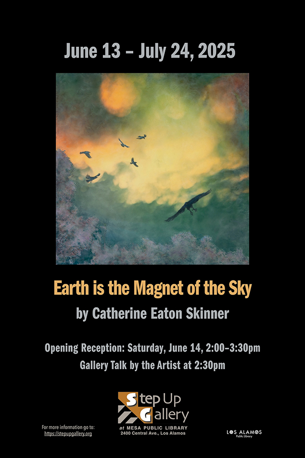 Step Up Gallery at Mesa Public Library invites the public to view renowned artist Catherine Eaton Skinner’s rich interpretations of the balance among the five elements: water, ether, earth, fire, and wind, in her solo show, Earth is the Magnet of the Sky. The show opens to the public June 13 and continues through July 24.