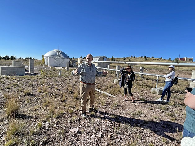 Dr. Van Romero, physics professor and director of Tech’s Space Science Program, describes for students and alumni how the MRO Interferometer was specially designed to capture light. Courtesy/NMT