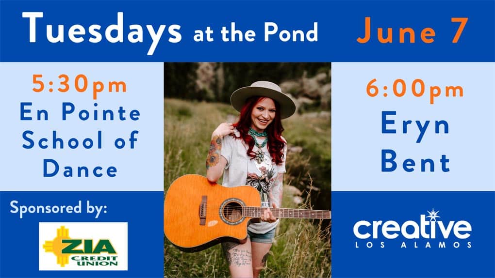 Los Alamos Creative District will host the Tuesdays at the Pond Summer Performance series tonight with Eryn Bent and a dance performance by En Pointe School of Dance.