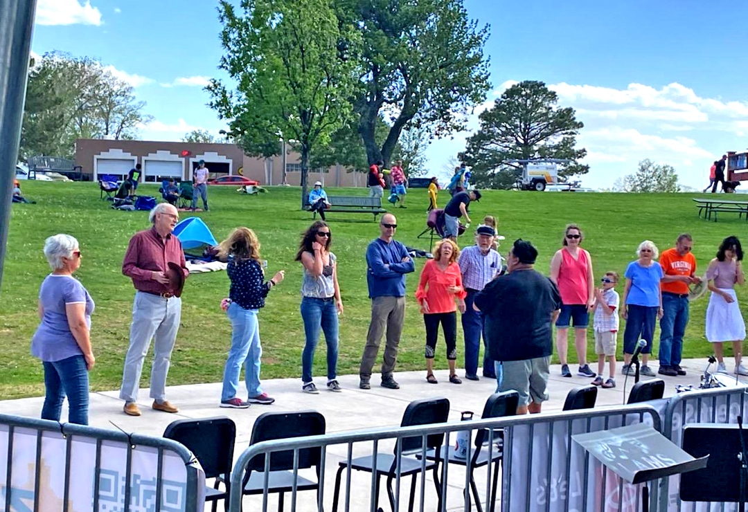Scene of community members gathered for Salsa and Cumbia lessons in front of the stage ahead of this evening’s first summer concert of the season at Ashley Pond Park. Photo by Ryn Herrmann Read More