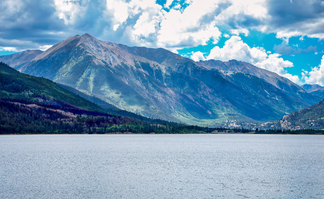 Lake and Mt. Hope: The twin lakes sit beside each other. This shows the larger of the two which sits to the east. In the background is Mt. Hope, one of several mountain peaks in the area. The village of Twin Lakes lies just
