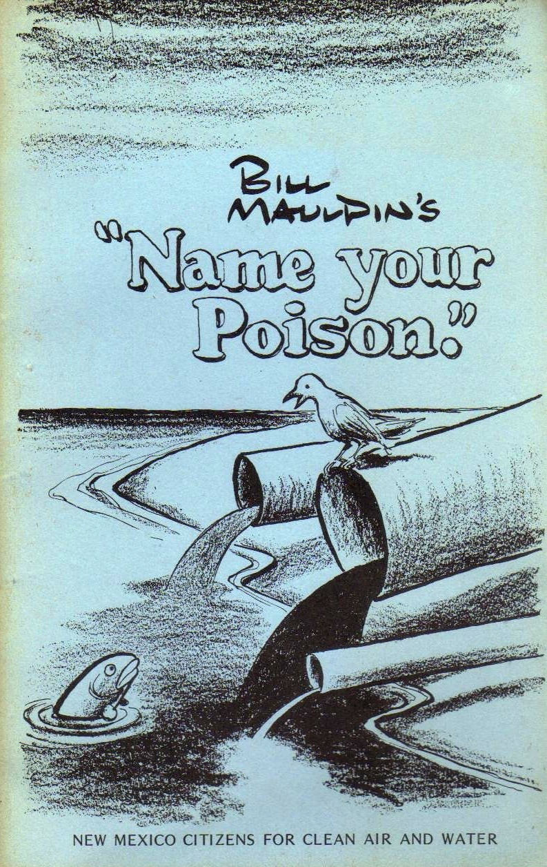 Note: In 1973, New Mexican Bill Mauldin gave permission to us, New Mexico Citizens for Clean Air & Water, Inc., to use his cartoons (copyright Chicago Sun-Times) in a book to raise awareness and fundraising. See, at Goodreads.com, Mauldin, Bill, 1921-2003. Bill Mauldin’s “Name Your Poison”. Citizens for Clean Air and Water, 1973.
