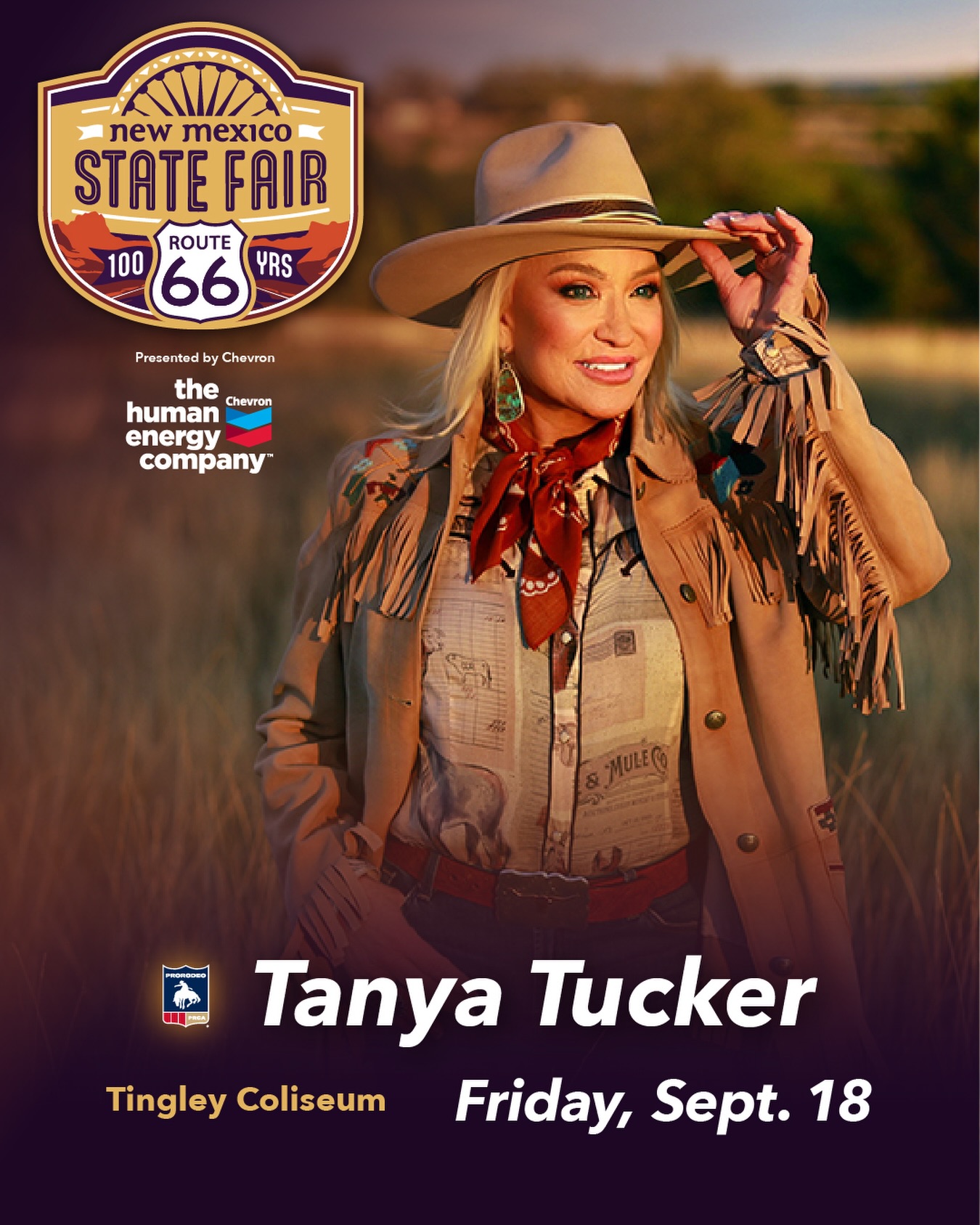 New Mexico State Fair officials announced the addition of Country Music Hall of Fame inductee Tanya Tucker to the 2026 New Mexico State Fair rodeo-concert lineup. Tanya Tucker will take the stage Friday, Sept. 18, following the Chevron PRCA rodeo.