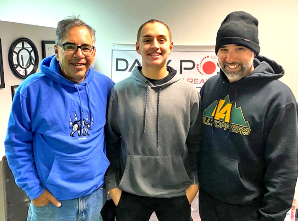 Three generations of LAHS district football champions, from left, Hector Hinojosa, his grandson Diego and son Tony during a recent visit to the Los Alamos Daily Post newsroom. Photo by Kirsten Laskey/ladailypost.com