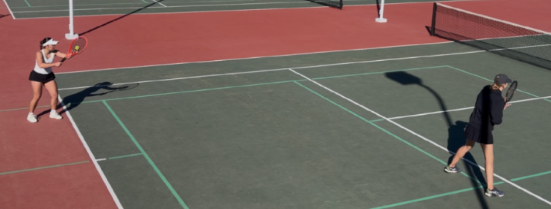 Angelie Echave prepares to serve while her partner, Alea Kretz, prepares to attack the return. Courtesy photo