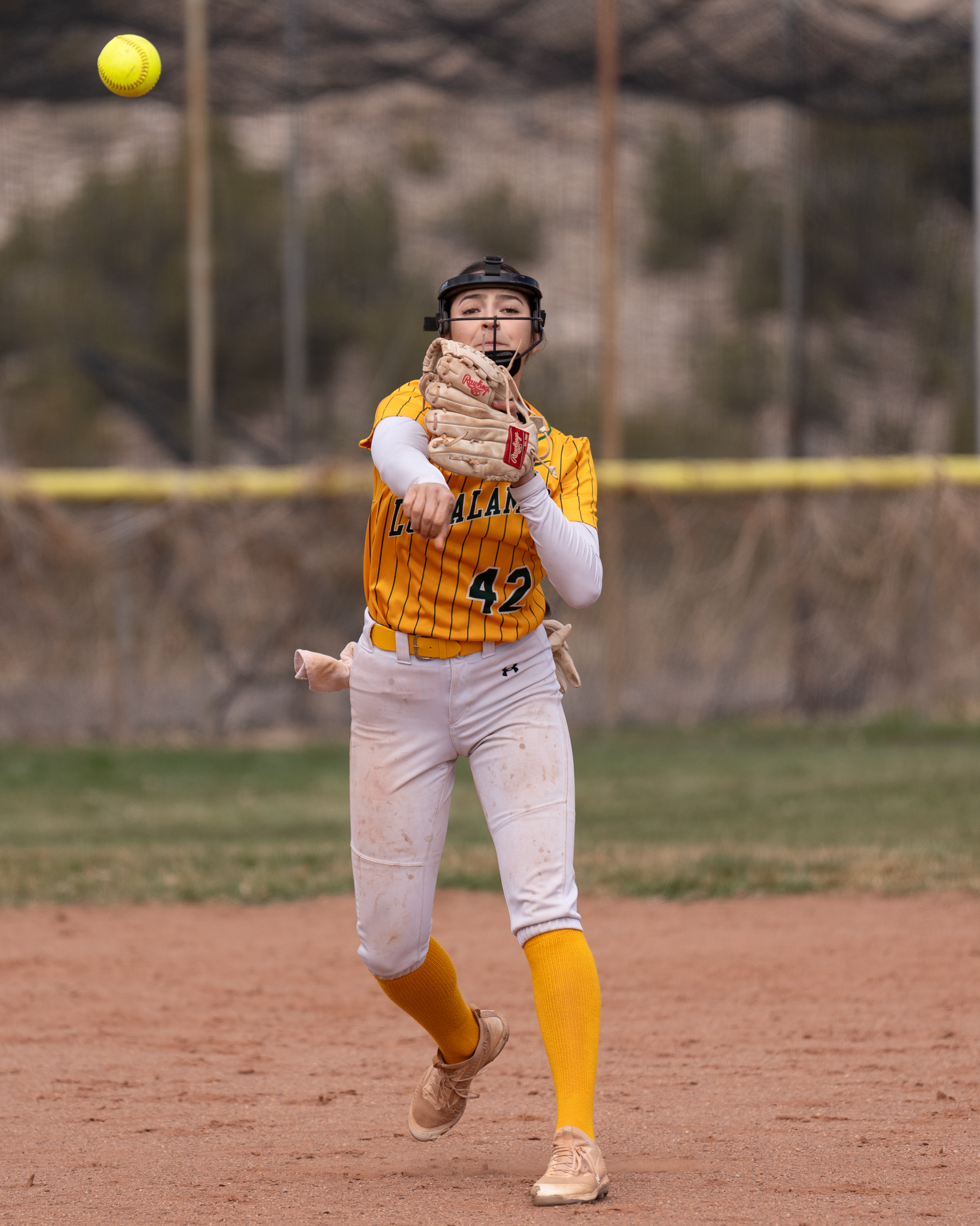 Abagail DeHerrera throws a perfect ball to first base and the out. Photo by Nate Limback/ladailypost.com