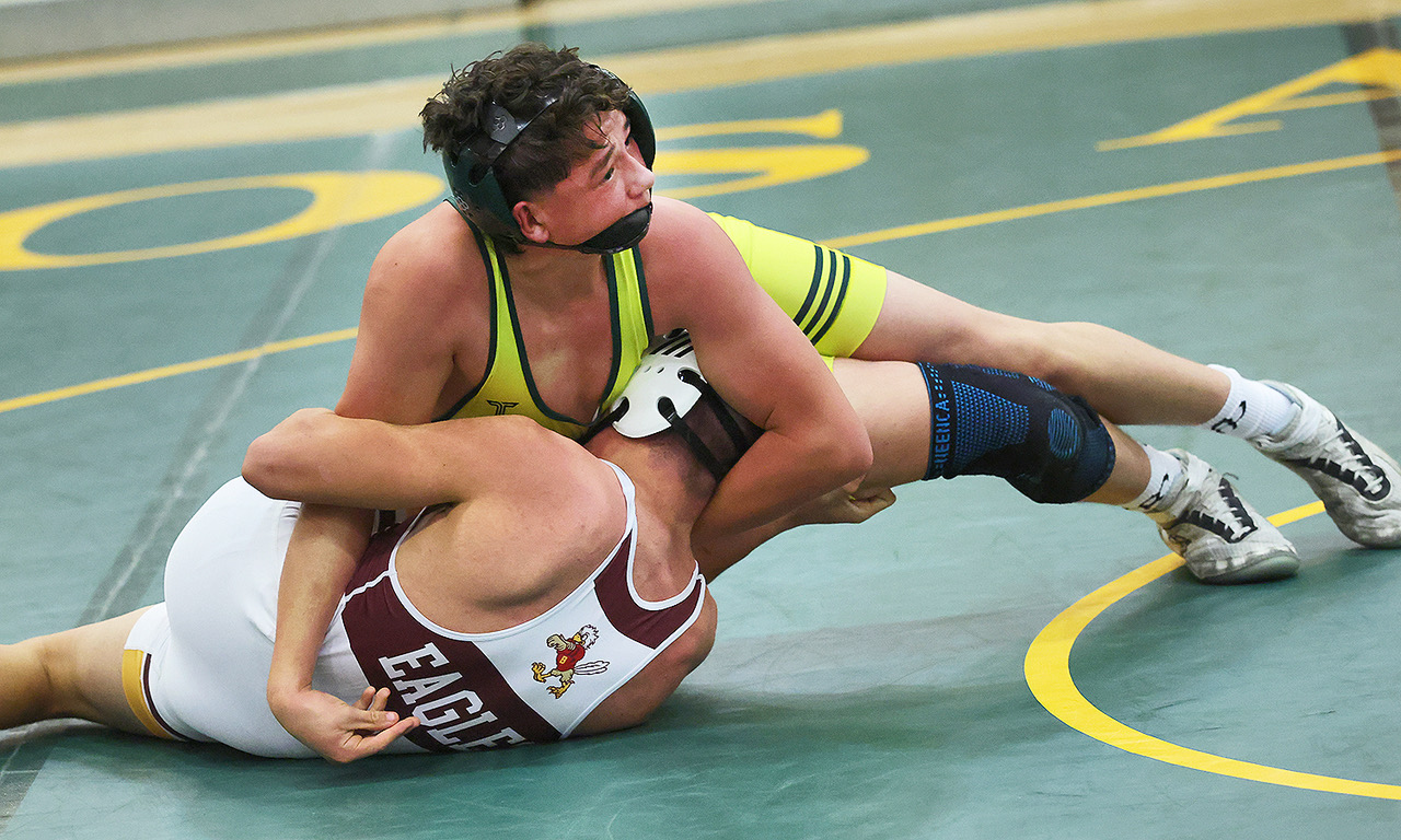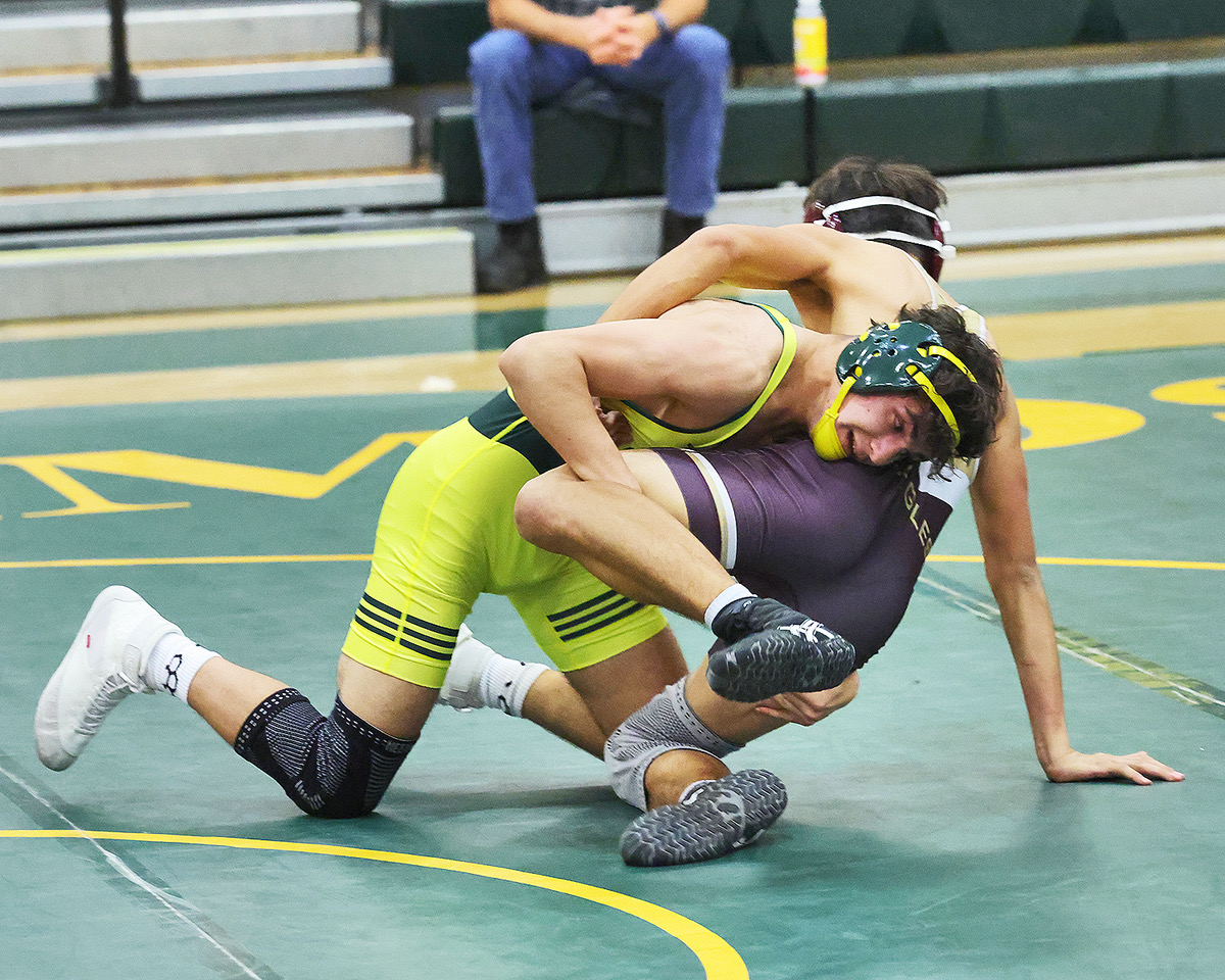 Frank Sheppard wrestling in the 170-pound weight class wins his match by a pin. Photo by John McHale/ladailypost.com