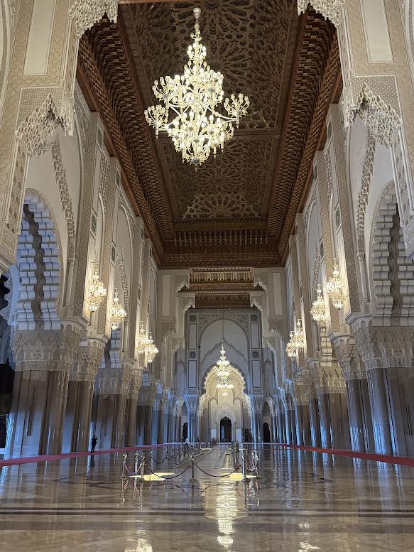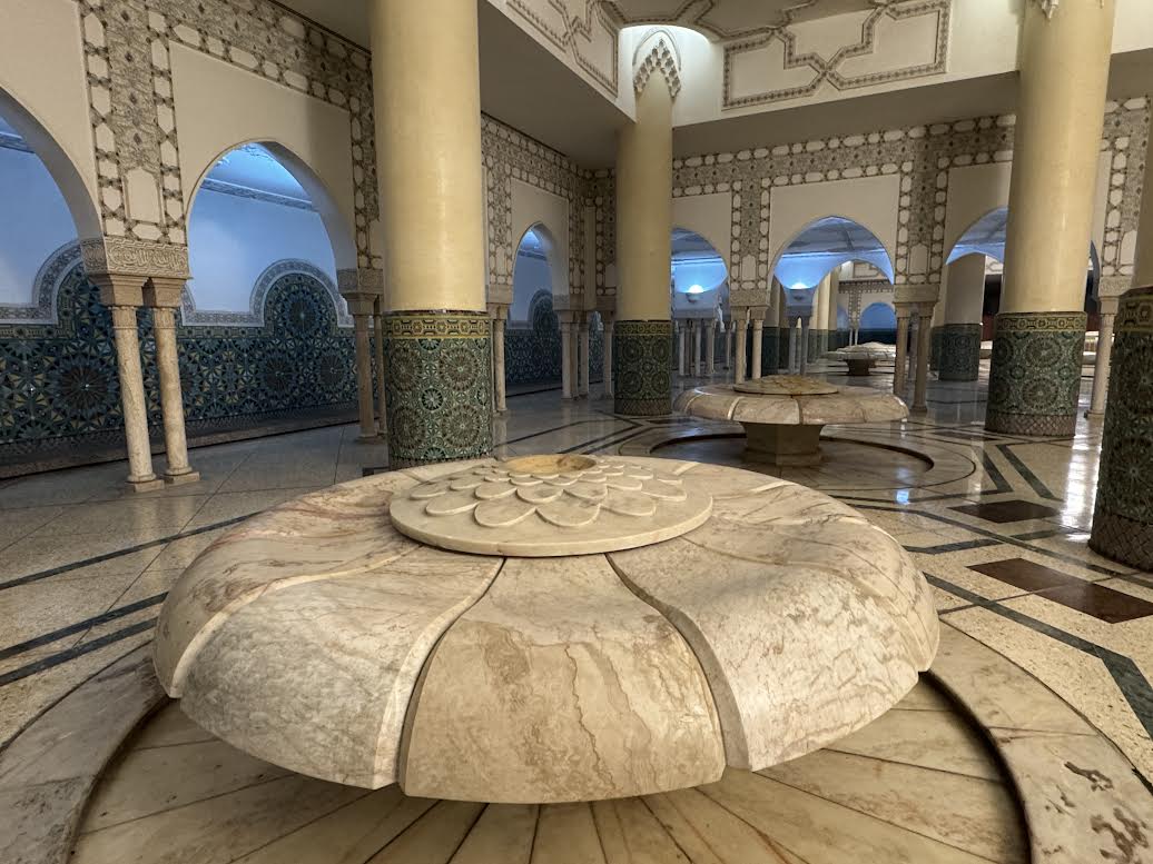 This mosque is the only one in the country that non-Muslims can enter and tours are strictly regulated. While waiting for our tour to begin, I marveled at the scale of the mosque and its surrounding campus. The building itself is 660 feet long and 330 feet wide and the entire complex is 22 acres, including a hammam (bathhouse), madrassa (Islamic school), museum, library and conference center.