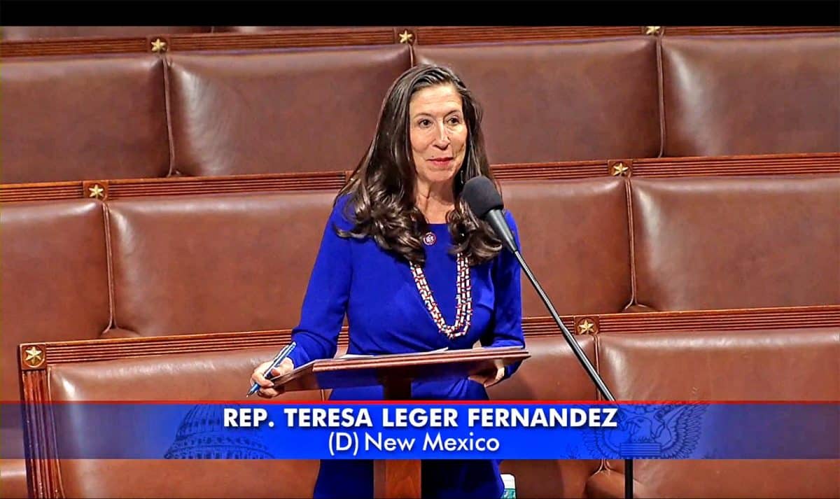 U.S. Rep. Teresa Leger Fernández during her floor speech today applauding the signing of a bill to extend the Radiation Exposure Compensation Act. Screenshot/LADP