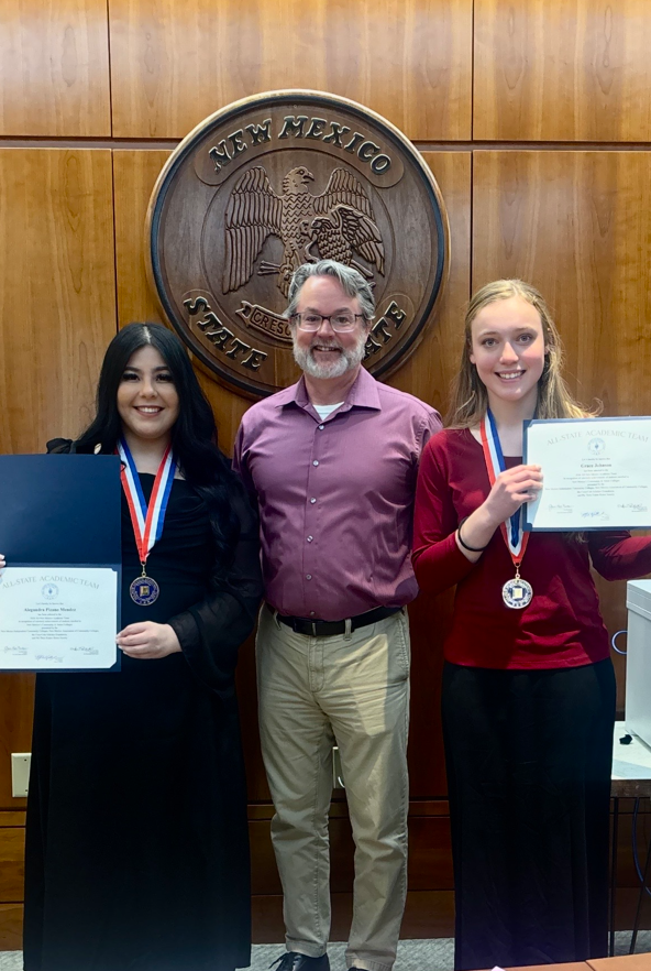 SANTA FE — UNM-Los Alamos (UNM-LA) students Grace Johnson, Alegandra Pizano Mendez and Mateo Torres were awarded the New Mexico All-State Academic Team Scholarship Jan. 28 at the New Mexico State Capitol.