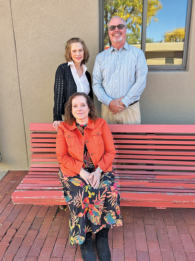 UNM-LA Director of Title V Anne Jarrett, seated, Director of Development Karen Williams and UNM-LA Chancellor Mike Holtzclaw share the exciting news that UNM-LA met its Title V grant $250,000 endowment donation match. Photo by Kirsten Laskey/ladailypost.com