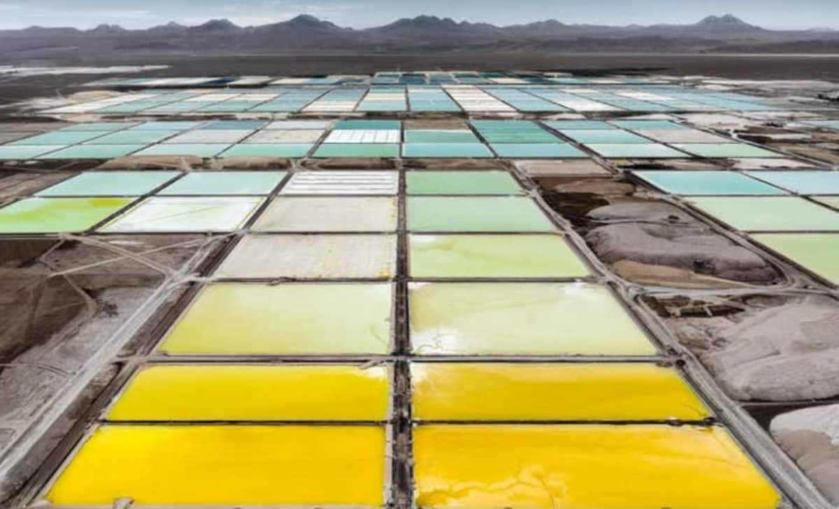 A series of brine ponds that pump water down drill holes dissolving the lithium and then returning the salty water to the surface and emptied into ponds. Courtesy/T. Wallace