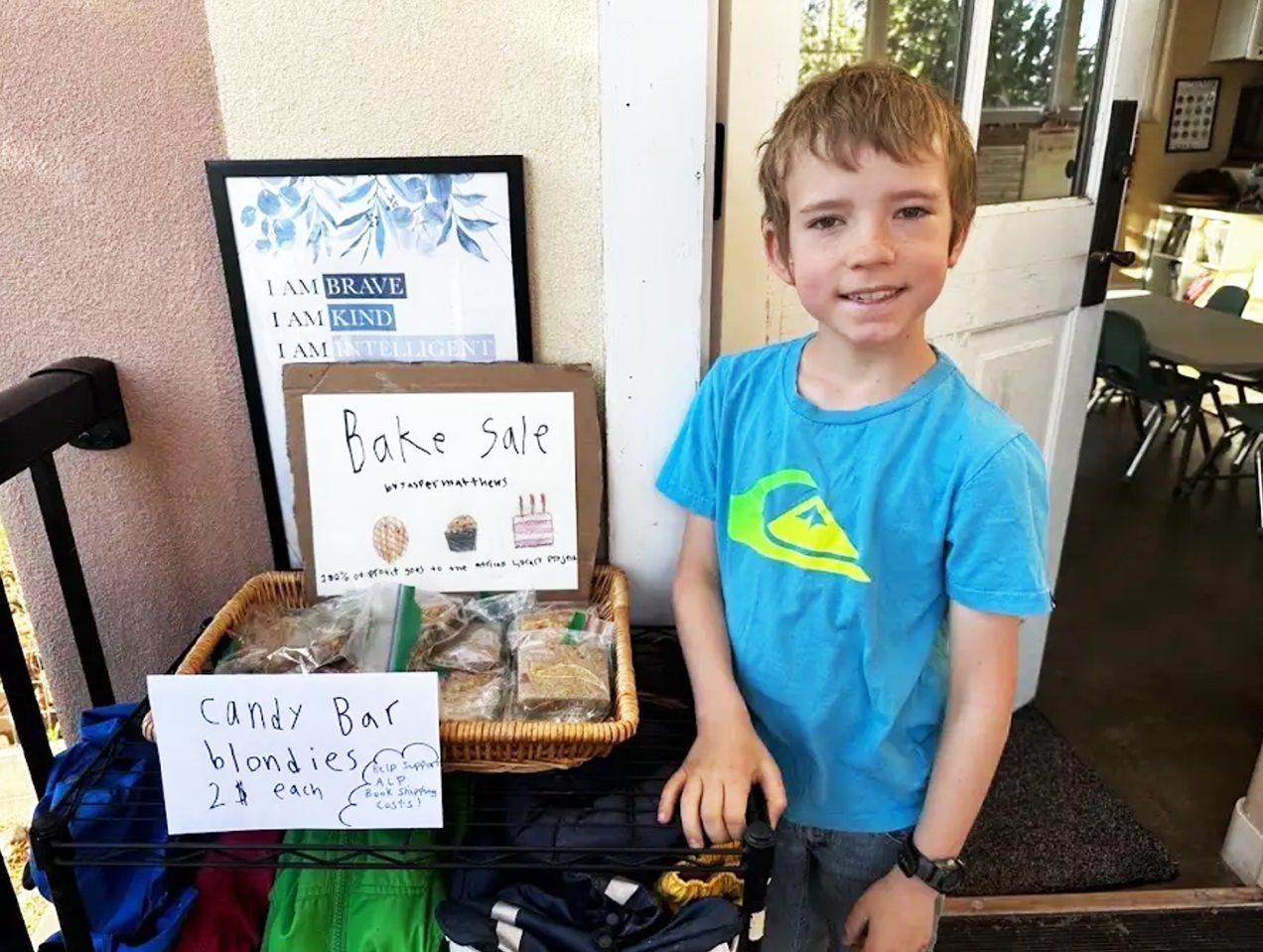 Families recently came together to help the students sort and pack the books as well as donated funds toward shipping costs. Extra special thanks go to the school director’s son, Jasper, who sold homemade blond brownies to supplement shipping costs because he saw a need and did something about it! What a heart!